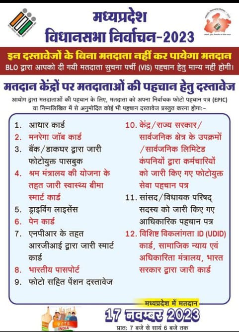 12 वैकल्पिक फोटोयुक्त दस्तावेज निर्धारित कोई एक दिखाकर मतदाता कर सकेंगे मतदान