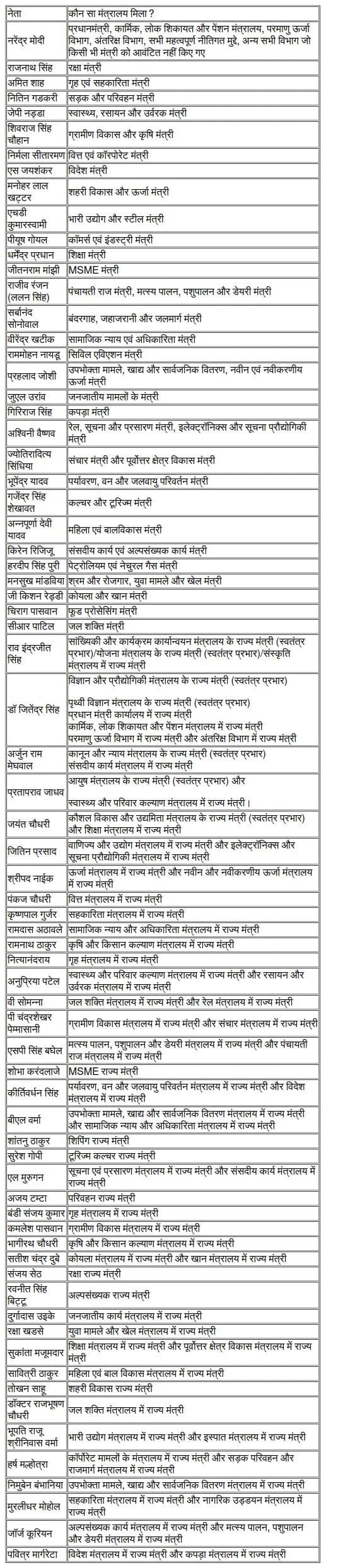 | नेता | कौन सा मंत्रालय मिला? |